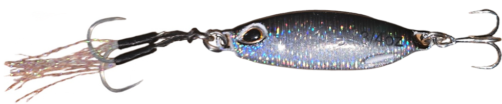The Vertical Jig is one of the most effective jigs for year-round fishing. This jig was designed to attract fish in the dark using two stinger hooks with translucent fiber. The treble hook selected for this lure is a 4X hardness to take on the largest fish in the water.