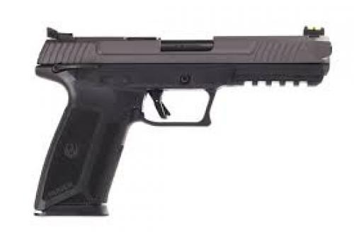 The Ruger 57 delivers good performance and accuracy in a lightweight, ergonomic, and reliable handgun design. It comes chambered in 5.7x28mm with a 4.94 inch barrel. Features include a fiber optic front sight, an adjustable rear sight, and two 20 round magazines.