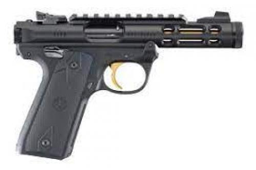 This Ruger Mark IV 22/45 Lite is a semi-automatic handgun chambered in 22 LR. It is the ideal lightweight rimfire pistol, perfect for target shooting and competition. It is crafted with a ventilated aerospace-grade aluminum receiver and a tensioned stainless steel barrel, as well as a comfortable, precision-molded polymer grip with serrated front and checkered back strap to ensure a secure grasp. The barrel is threaded and boasts ultra-precise refiling for exceptional accuracy and longevity. Adjustable sights aid in target acquisition, while a factory-installed Picatinny rail offers easy mounting of optics and accessories. The simple, one-button takedown makes maintenance on this pistol a breeze.
