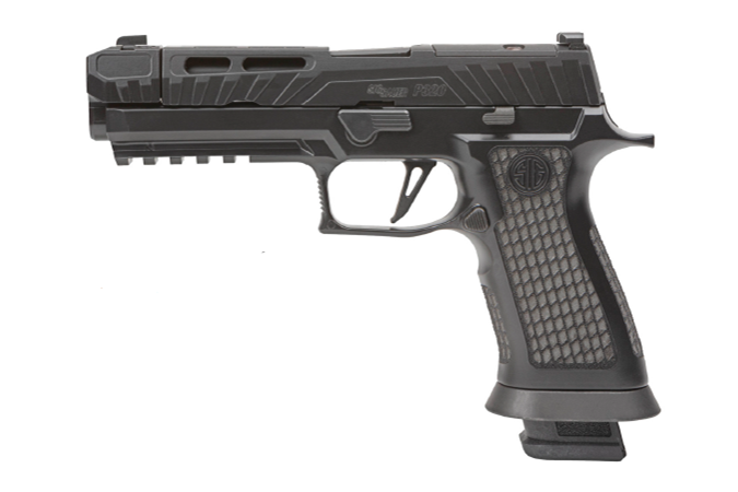 The SIG SAUER P320 Spectre Comp Blackout chambered in 9mm with a 4.6" barrel is a compact and high-performance pistol designed for self-defense, competition, and tactical applications. This pistol is known for its accuracy, reliability, and advanced features. Key Features: 9mm Caliber: The pistol is chambered in 9mm, a popular and widely used cartridge known for its manageable recoil and effectiveness in self-defense and competition. 4.6" Barrel: The 4.6-inch barrel length provides a good balance between accuracy and compactness, making it suitable for both concealed carry and target shooting. Spectre Comp Blackout Configuration: The Spectre Comp Blackout configuration typically includes features such as a compensator for reduced recoil and muzzle rise, a blacked-out finish for reduced glare, and enhanced ergonomics for improved handling. Modularity: The P320 platform is known for its modularity, allowing for easy customization with different grip modules, slides, and other accessories. Accuracy: The SIG SAUER P320 is known for its accuracy, with a smooth trigger and a high-quality barrel that contribute to its shooting performance. Overall, the SIG SAUER P320 Spectre Comp Blackout chambered in 9mm is a high-performance pistol that is suitable for a wide range of shooting applications, including self-defense, competition, and tactical use.